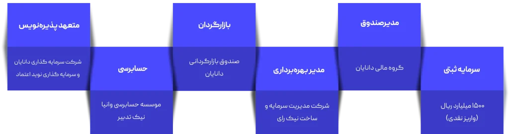 هر یک از دست اندرکاران این صندوق در رشتهی فعالیت خود باتجربه، متخصص و دارای برند هستند. شرکت مدیریت سرمایه و ساخت نیکرای دهها پروژهی بزرگ ساختمانی را با موفقیت تکمیل و واگذار کرده است؛ همچنین پروژههای ساختمانی متعددی را هم در دست اجرا و واگذاری دارد. این شرکت به عنوان رکن «مدیر بهره برداری» قبول سمت کرده است. شرکت نیکرای دادههای فراوانی را در مورد املاک (به ویژهی املاک تهران) در اختیار دارد که سبب کسب درآمد و سرعت عمل در واگذاری میشود. مدیران گروه مالی دانایان نیز تجربهی مدیریت صندوق، شرکت داری، و ادارهی دهها شرکت سهامی عام و خاص در زمینهی املاک و مستغلات را در کارنامۀ خود دارند. این گروه وظیفهی رکن «مدیر صندوق» را عهده دار شده است.